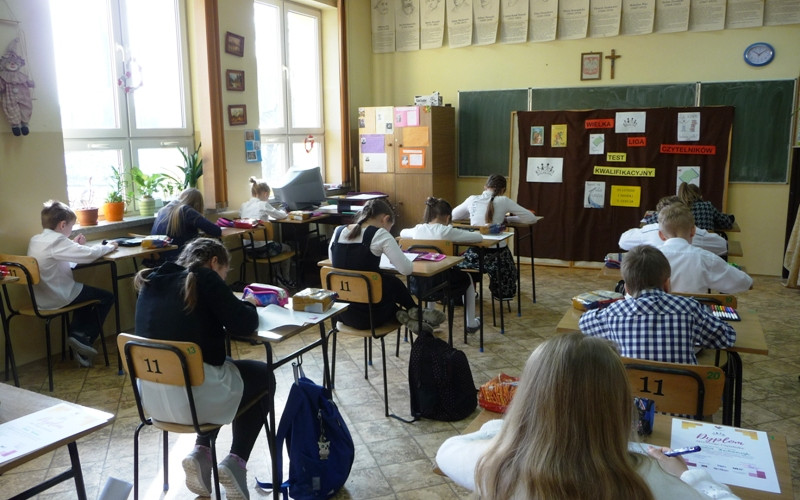 Dnia 24 lutego br. na trzeciej lekcji sala polonistyczna koło biblioteki zapełniła się wyjątkowymi czytelnikami. Byli to finaliści szkolnego etapu ogólnopolskiego konkursu Wielka Liga Czytelników, którzy przeczytali po 10 książek z przygotowanej przez organizatorów listy i wykonali do nich 10 testów ocenionych przynajmniej na 80 %. Uczniów z klas 1-3 było dziewiętnastu, a z klas 4-6 jedenastu. Wszyscy stawili się, aby napisać test finałowy – kl. 1-3 z książki „Jacek, Wacek i Pankracek” Miry Jaworczakowej, kl. 4-6 z książki „W 80 dni dookoła świata” Juliusza Verne’a. Na początku imprezy pani dyrektor Anna Lang i jej zastępca pani Agnieszka Błach pogratulowały miłośnikom książek wytrwałości w czytaniu kolejnych pozycji i wręczyły każdemu dyplom ukończenia I etapu konkursu. Po życzeniach jak najlepszego napisania testu kwalifikacyjnego i przysłowiowego „połamania piór” rozpoczęły się zmagania. Trzeba dodać, iż pytania były bardzo szczegółowe i wymagały od uczestników naprawdę dogłębnego studiowania lektury. Po napisaniu testu uczestnicy obdarowani paluszkami dla uzupełnienia utraconych kalorii wrócili do swoich klas na lekcje, a panie bibliotekarki rozpoczęły sprawdzanie prac. Po wnikliwym policzeniu wszystkich zdobytych punktów nadszedł czas na ogłoszenie wyników. Prezentują się one następująco: