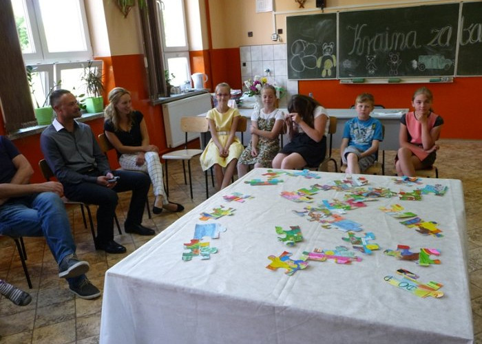 Na początku imprezy pani dyrektor Agnieszka Błach przywitała gości, rodziców i dzieci. Później uczniowie klasy 6 b przedstawili scenkę pt. „Misja niemożliwa”. Następnie po zapoznaniu się z regułami gry wszyscy uczestnicy udali się do swoich klas, aby rozpocząć podróż po Książkolandii. Na drzwiach każdej sali witała przybyłych okładka książki, a w środku różne prezentacje i zadania. Uczono piosenki, rysowano postać z bajki, szukano tytułów książek, układano puzzle, dopasowywano rekwizyty do postaci baśniowych, rozwiązywano krzyżówki, rodzice czytali dzieciom, był teatrzyk cieni, kalambury i wiele innych pomysłowych zadań. Każda klasa stworzyła dekorację do swojej książki. Było kolorowo i bardzo wesoło. Na koniec miał odbyć się wielki finał, ale niestety sprzęt nagłaśniający zawiódł i nie można było dokończyć, tak jak chcieliśmy, tej wielkiej imprezy. Wszyscy zakończyli grę z wynikiem pozytywnym, dlatego też każda klasa otrzymała stosowny certyfikat i słodką nagrodę do podziału w klasie. Nie mogliśmy niestety wręczyć podziękowań różnym osobom. Dlatego chcielibyśmy to zrobić poprzez stronę internetową. Dziękujemy pięknie firmie Lajkonik Snacks ze Skawiny za słodycze na nagrody, pani Joannie Myjak za pośrednictwo w otrzymaniu produktów od firmy Lajkonik oraz firmie Auto Serwis z Chrząstowic za przekazanie środków finansowych na zakup książek do biblioteki. Dziękujemy również wszystkim wychowawcom klas i uczniom, gdyż bez ich zaangażowania nie byłaby możliwa tak wspaniała zabawa i jednocześnie promocja książek. Słowa uznania należą się również niezawodnej Radzie Rodziców, która zadbała o kulinarną stronę przedsięwzięcia. Do zobaczenia za rok.