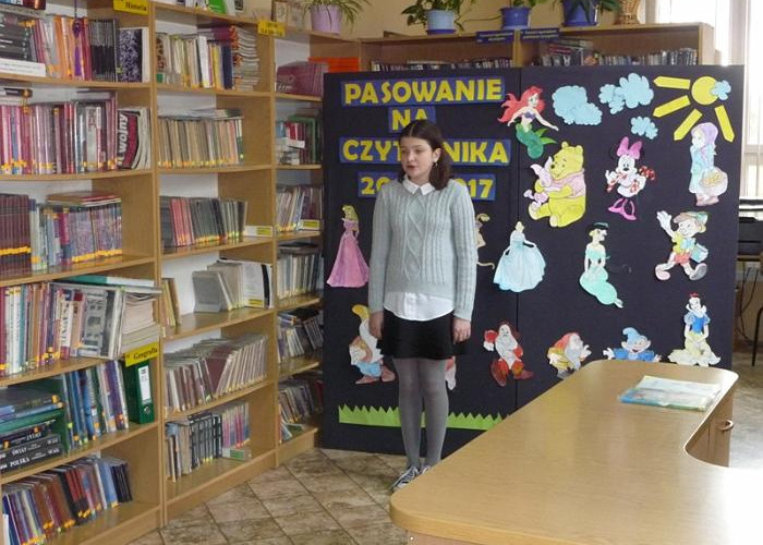 Dnia 22 lutego 2017r. w naszej bibliotece miała miejsce ważna, dla pierwszoklasistów szkoły podstawowej, uroczystość, a mianowicie „Pasowania na czytelników”. Po przywitaniu milusińskich nastąpiło sprawdzanie, co dzieci wiedzą o miejscu, które odwiedziły. Posypał się deszcz różnorodnych pytań na temat poszanowania książek. Nasi najmłodsi odpowiadali na nie, nie mając żadnych problemów.
