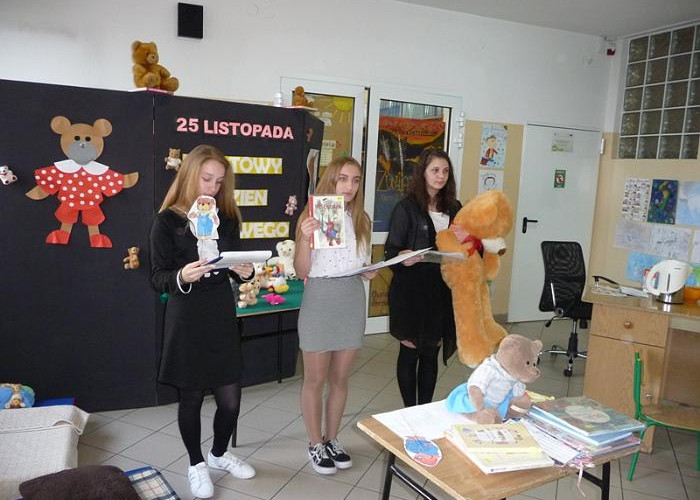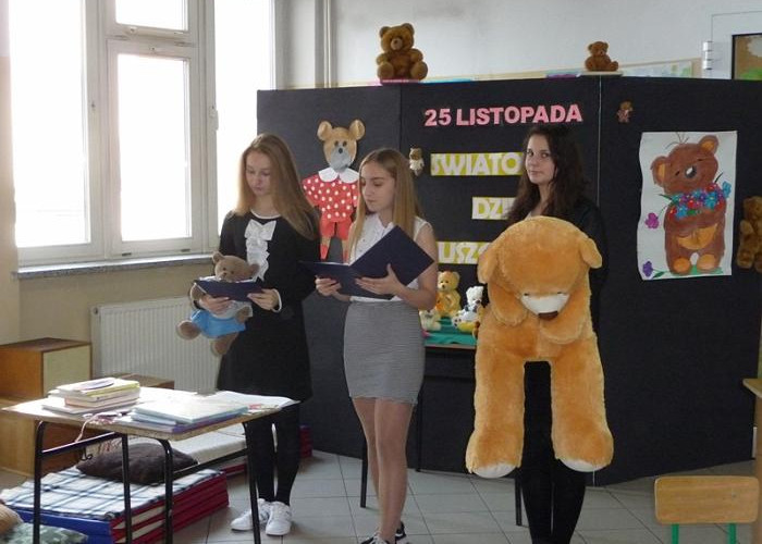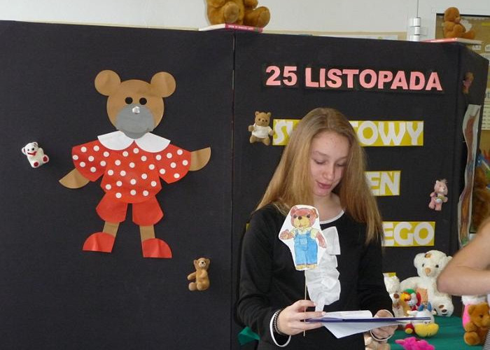 Światowy Dzień Pluszowego Misia został ustanowiony w 2002 roku, dokładnie w 100. rocznicę powstania tej popularnej maskotki. W tym roku miś obchodzi swoje 115. urodziny!!! Z tej okazji nauczyciele-bibliotekarze wspólnie z uczniami gimnazjum realizującymi projekt edukacyjny przygotowali 28 listopada dla uczniów klas I i II szkoły podstawowej niecodzienną uroczystość.