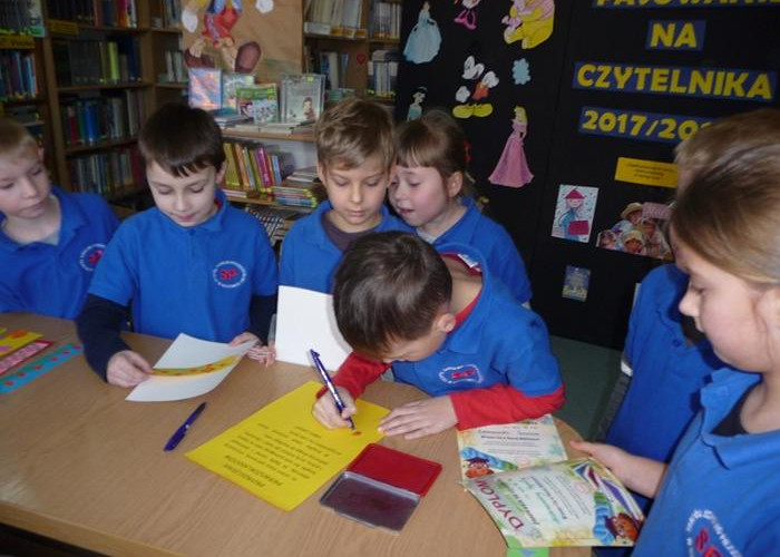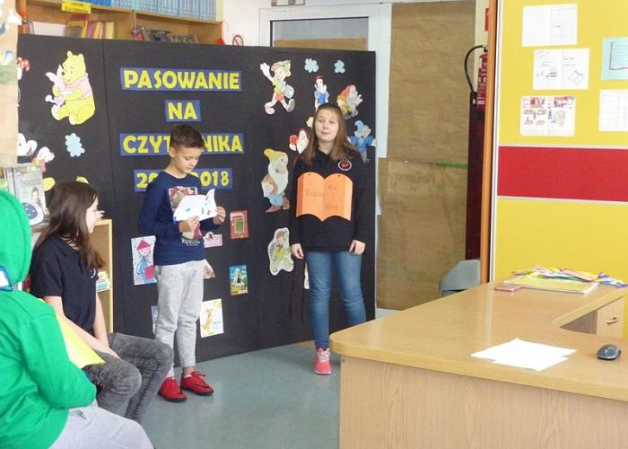 Dnia 6 lutego 2018 r. uczniowie klas pierwszych zostali zaproszeni do biblioteki na ważną dla nich uroczystość, a mianowicie „Pasowanie na czytelnika”. Od dziś dzieci te stały się pełnoprawnymi członkami naszej biblioteki. Na godzinnym spotkaniu (najpierw klasa 1 A, na następnej lekcji 1 B) poznały zasady korzystania z biblioteki, odpowiadały na pytania dotyczące poszanowania książki, opowiadały o swoich ulubionych lekturach z własnej biblioteczki.